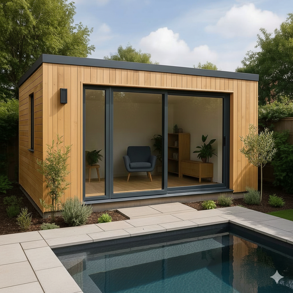 L’esthétique de votre extérieur est une priorité. Le pool house contemporain d’Un Toit en Plus est conçu pour être un prolongement architectural de votre résidence, caractérisé par des lignes pures, des toits plats et l’utilisation judicieuse de matériaux modernes. Il dépasse la simple fonctionnalité pour devenir une véritable déclaration de style et un point focal de votre espace de vie extérieur.